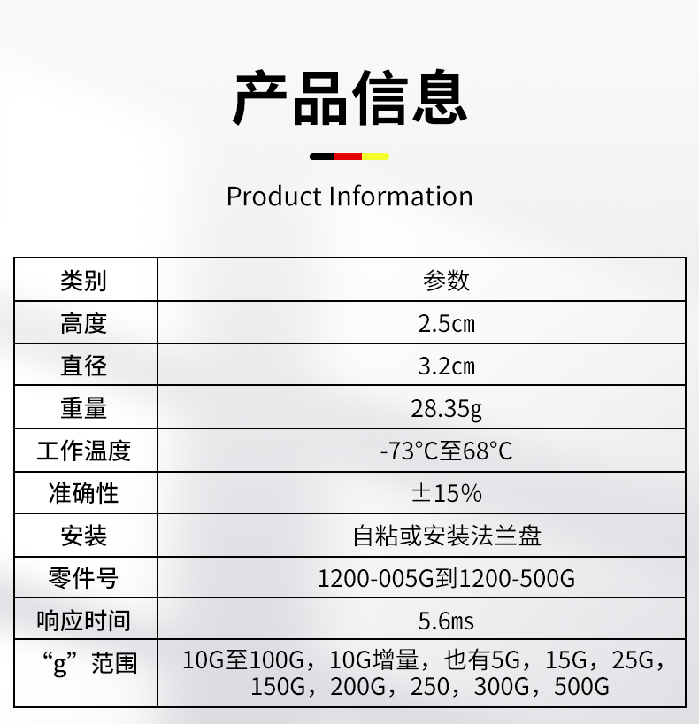 可以安装通过自粘的表面或嵌装固定法兰,帮助确认包装的有效性。能够帮助识别运输链中的故障点,十字弹簧和轴承设计是为了简单和响应性设计的。